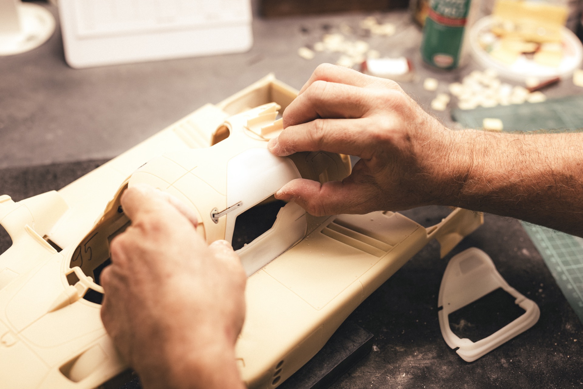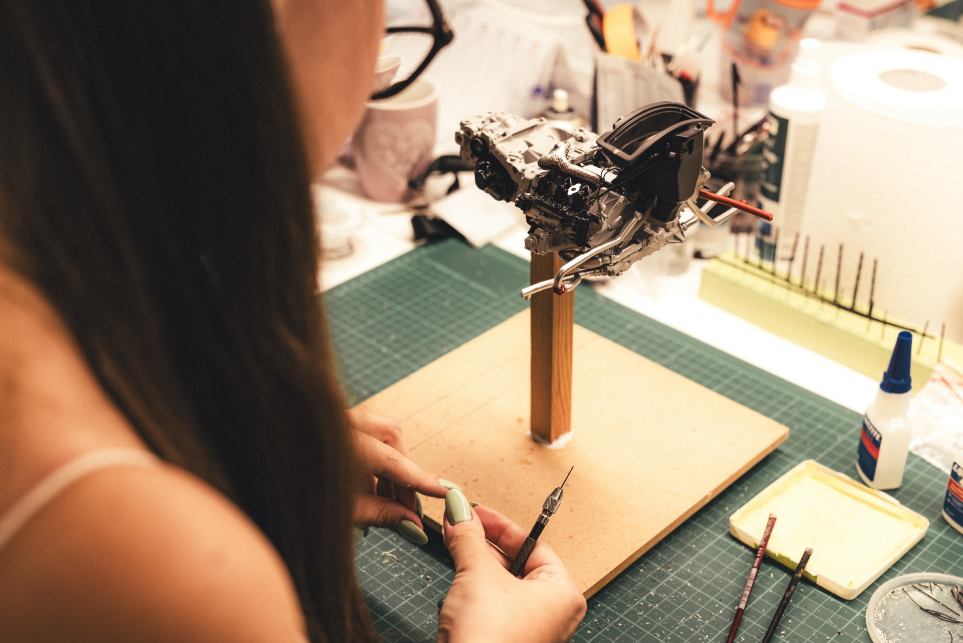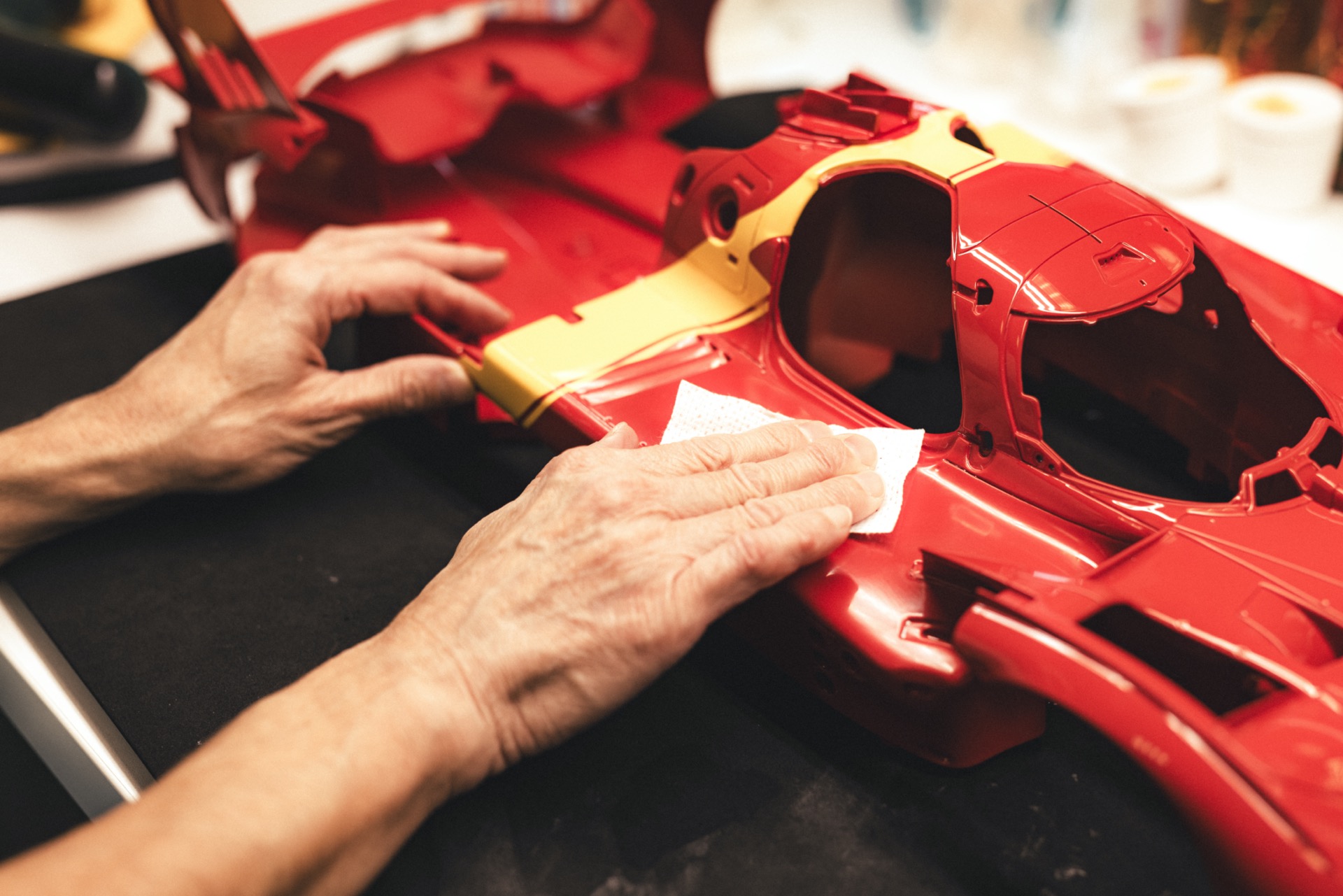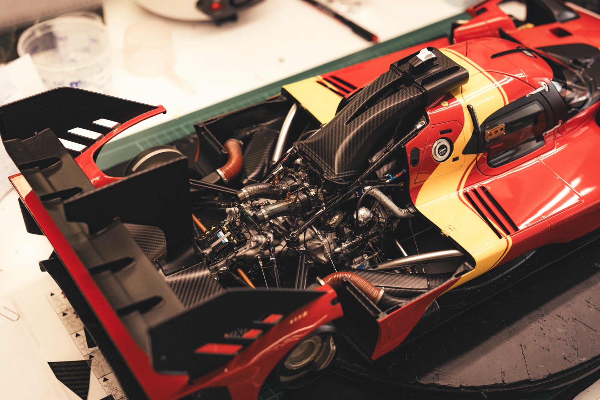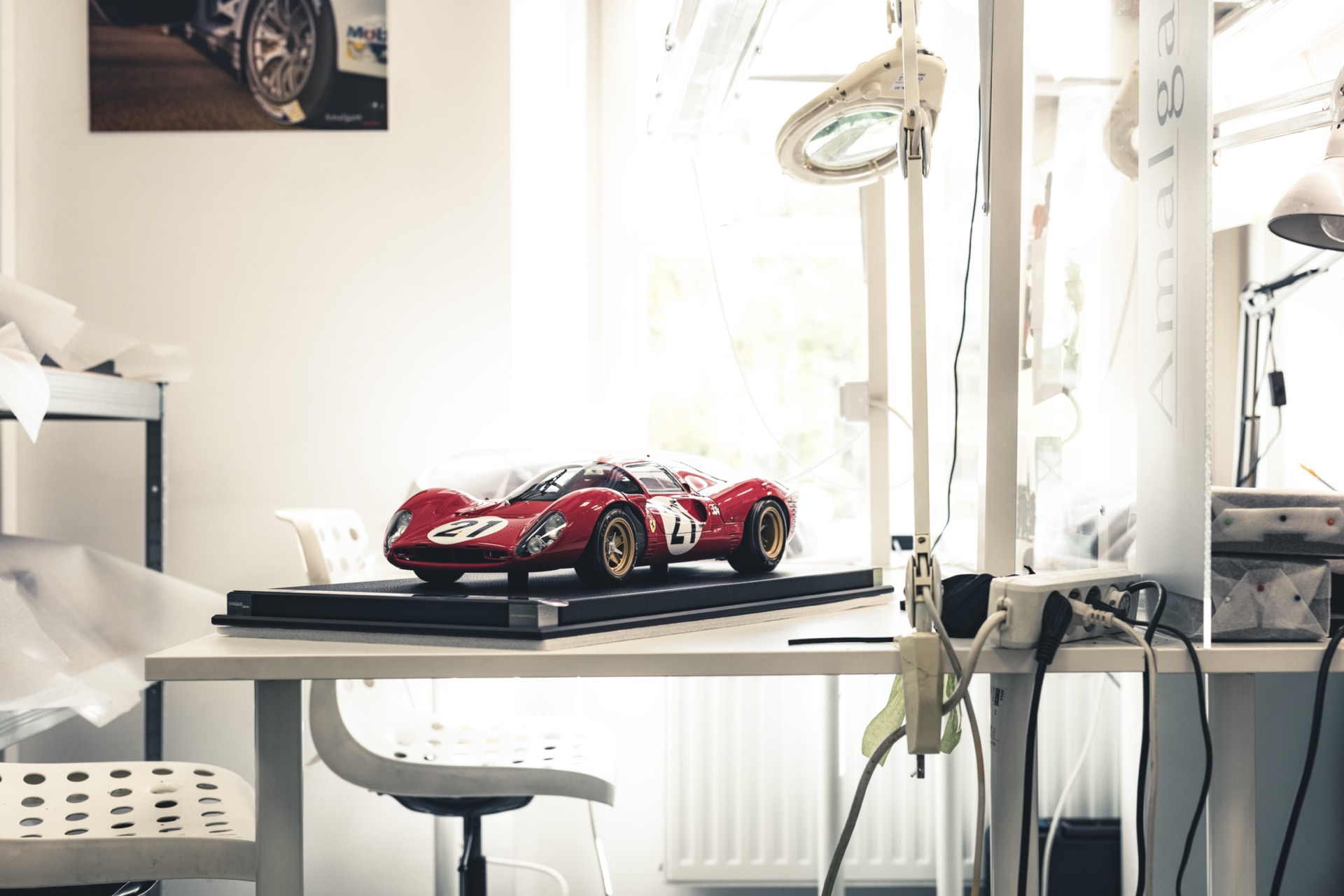 The workshop operates much like a car factory, albeit on a smaller scale, with an even higher attention to detail. Anyone familiar with model building knows that parts rarely fit perfectly without some manual adjustment. The craftsmen at Amalgam ensure that everything aligns flawlessly. Much like a full-scale car factory, the process here includes various stages: test fitting, bodywork, painting, assembly, and everything in between. The team even has an in-house studio for capturing stunning images of the finished products.