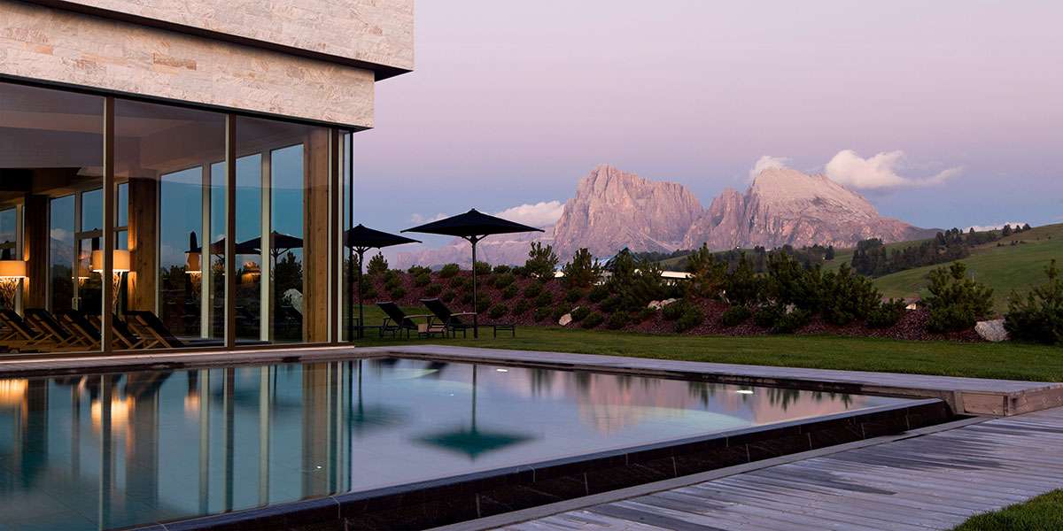 Technically the Alpina Dolomites hotel is not in Val Gardena but located up on the Seiser Alm but we still want to include it. This modern five star resort is regarded as one of the best hotels in the entire Dolomites and provides spacious rooms, an incredible wellness center with indoor- and outdoor pools and perfect service.