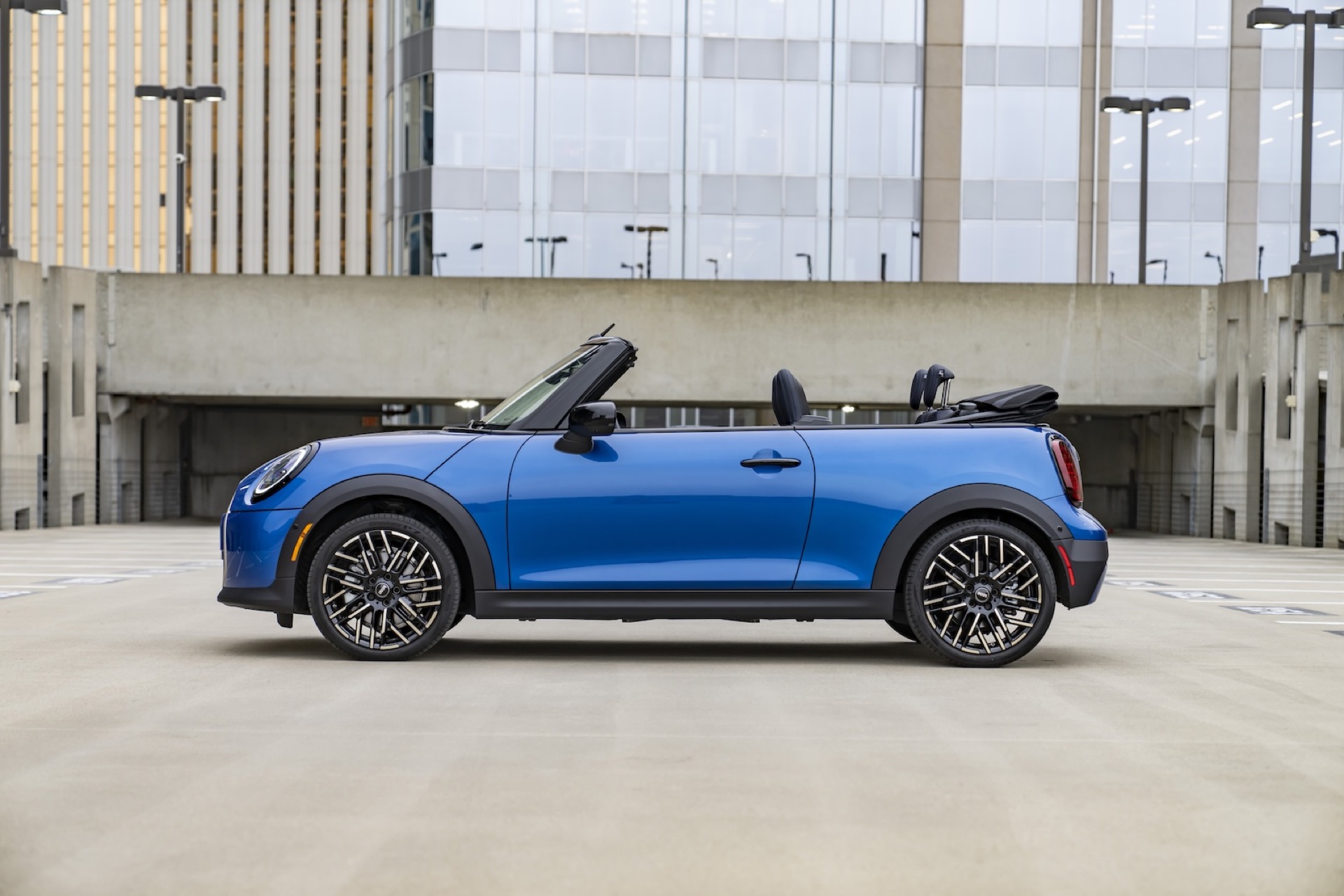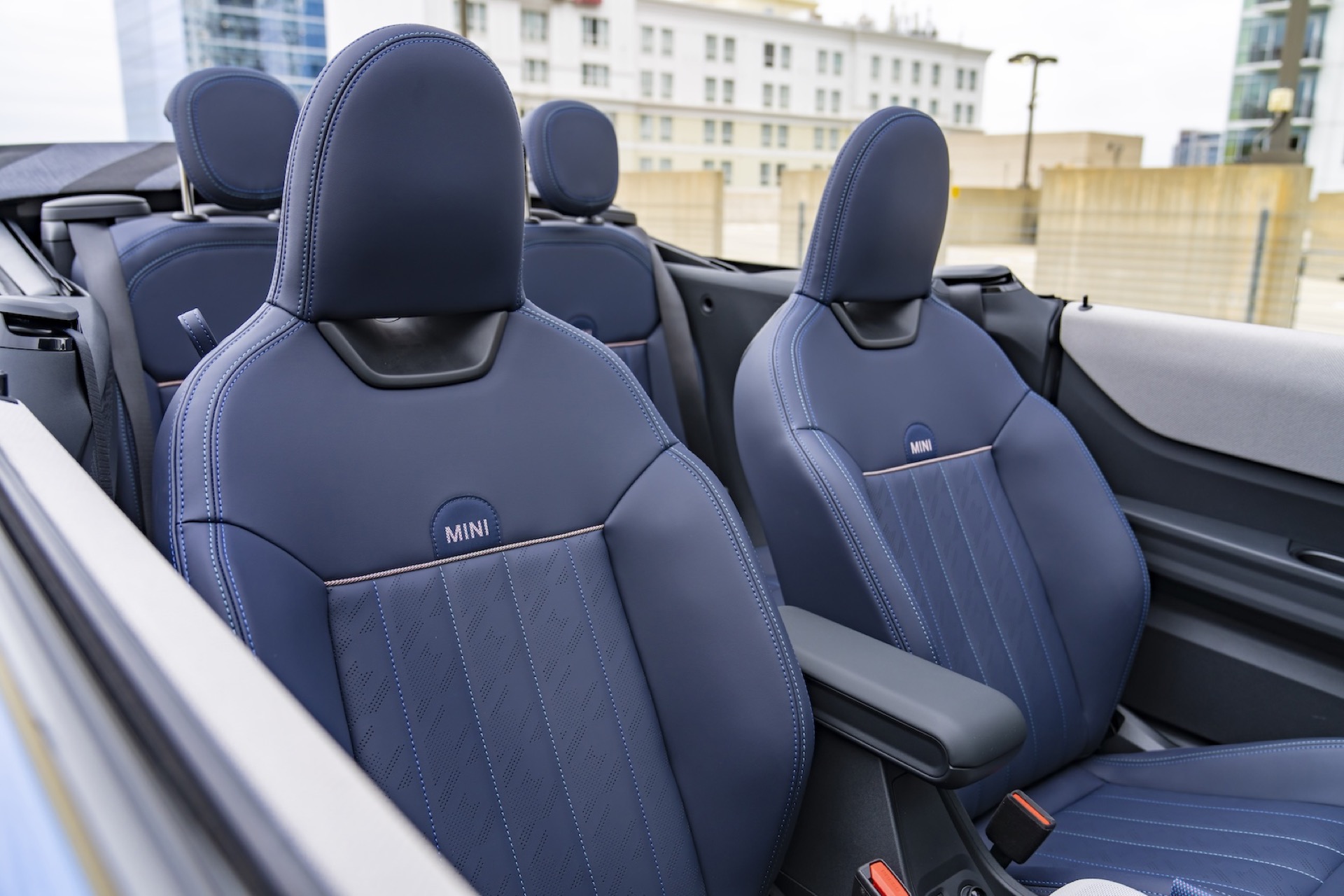 Unsurprisingly, the best way to enjoy a new Mini is with a petrol engine. For extra joy, press the rear-view mirror button and open the convertible roof. Let the sunshine in!